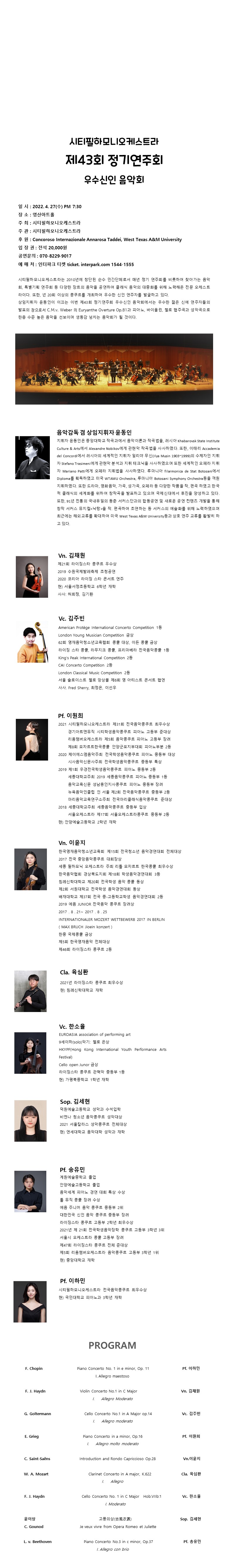 ½ÃƼÇÊÇϸð´Ï¿ÀÄɽºÆ®¶ó Á¦43ȸ Á¤±â¿¬ÁÖȸ ¿ì¼ö½ÅÀÎ À½¾Çȸ