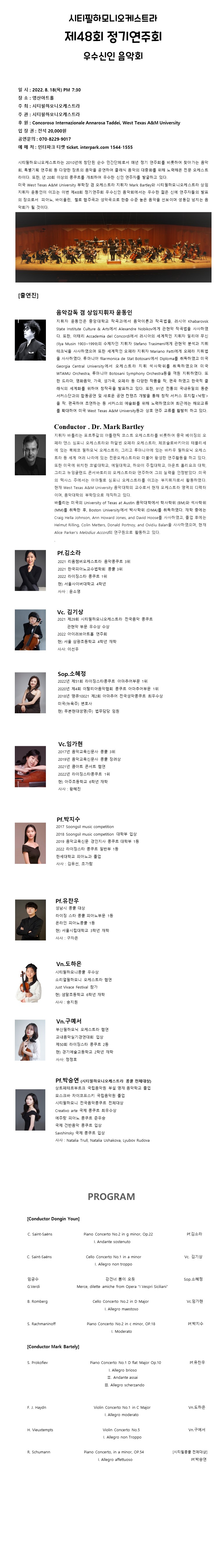 ½ÃƼÇÊÇϸð´Ï¿ÀÄɽºÆ®¶ó Á¦48ȸ Á¤±â¿¬ÁÖȸ ¿ì¼ö½ÅÀÎ À½¾Çȸ