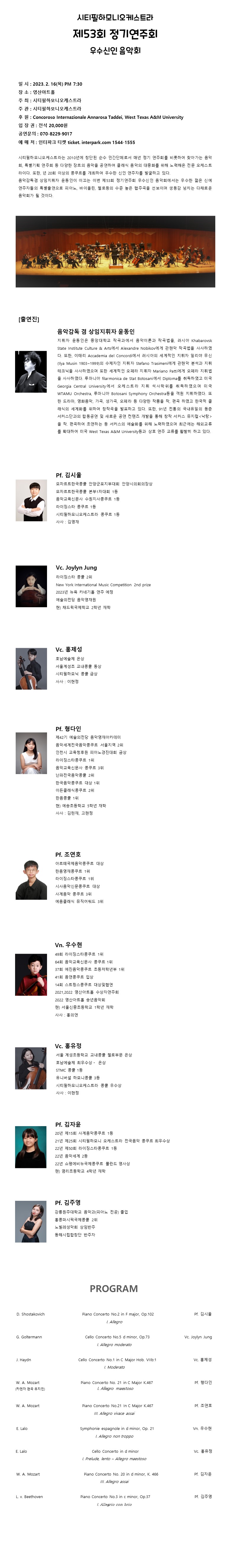 ½ÃƼÇÊÇϸð´Ï¿ÀÄɽºÆ®¶ó Á¦53ȸ Á¤±â¿¬ÁÖȸ ¿ì¼ö½ÅÀÎ À½¾Çȸ