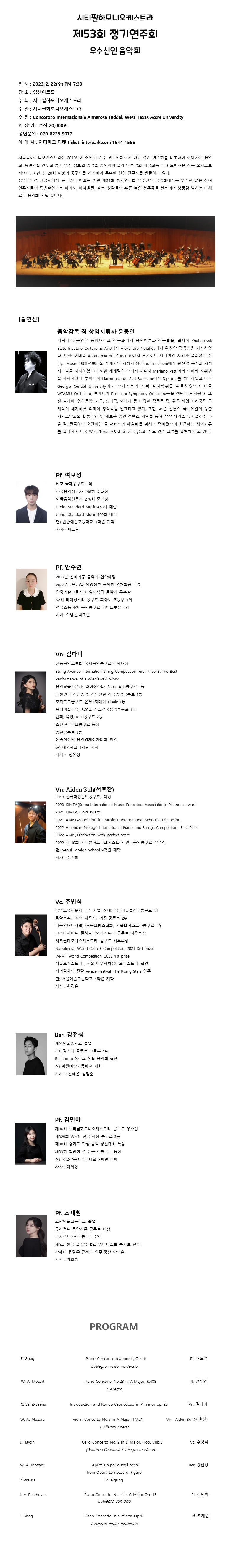 ½ÃƼÇÊÇϸð´Ï¿ÀÄɽºÆ®¶ó Á¦54ȸ Á¤±â¿¬ÁÖȸ ¿ì¼ö½ÅÀÎ À½¾Çȸ