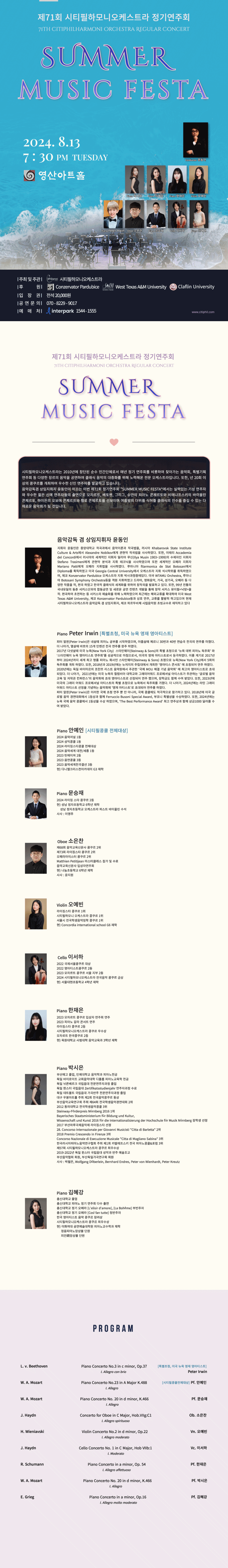 Á¦71ȸ ½ÃƼÇÊÇϸð´Ï¿ÀÄɽºÆ®¶ó Á¤±â¿¬ÁÖȸ ¡±SUMMER MUSIC FESTA¡°