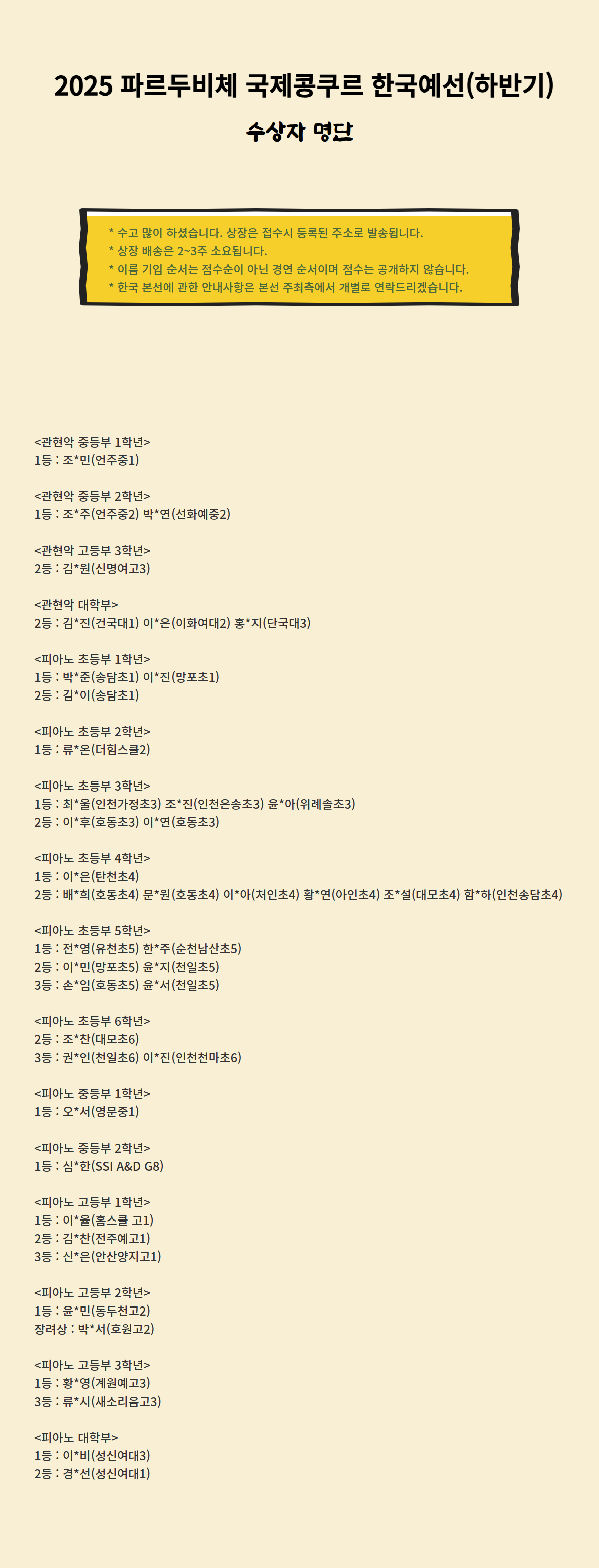 2025 ÆÄ¸£µÎºñü ±¹Á¦ÄáÄð Çѱ¹¿¹¼±(ÇϹݱâ)¼ö»óÀÚ ¸í´Ü